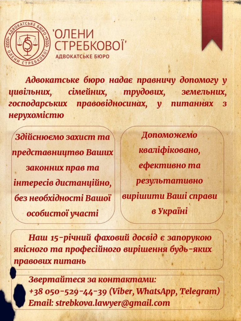 Питання по законодавству України, отриманню апостильованих документів, оформленню довіреностей, спадщини, розлученню або уникненню подвійного оподаткування, консультації